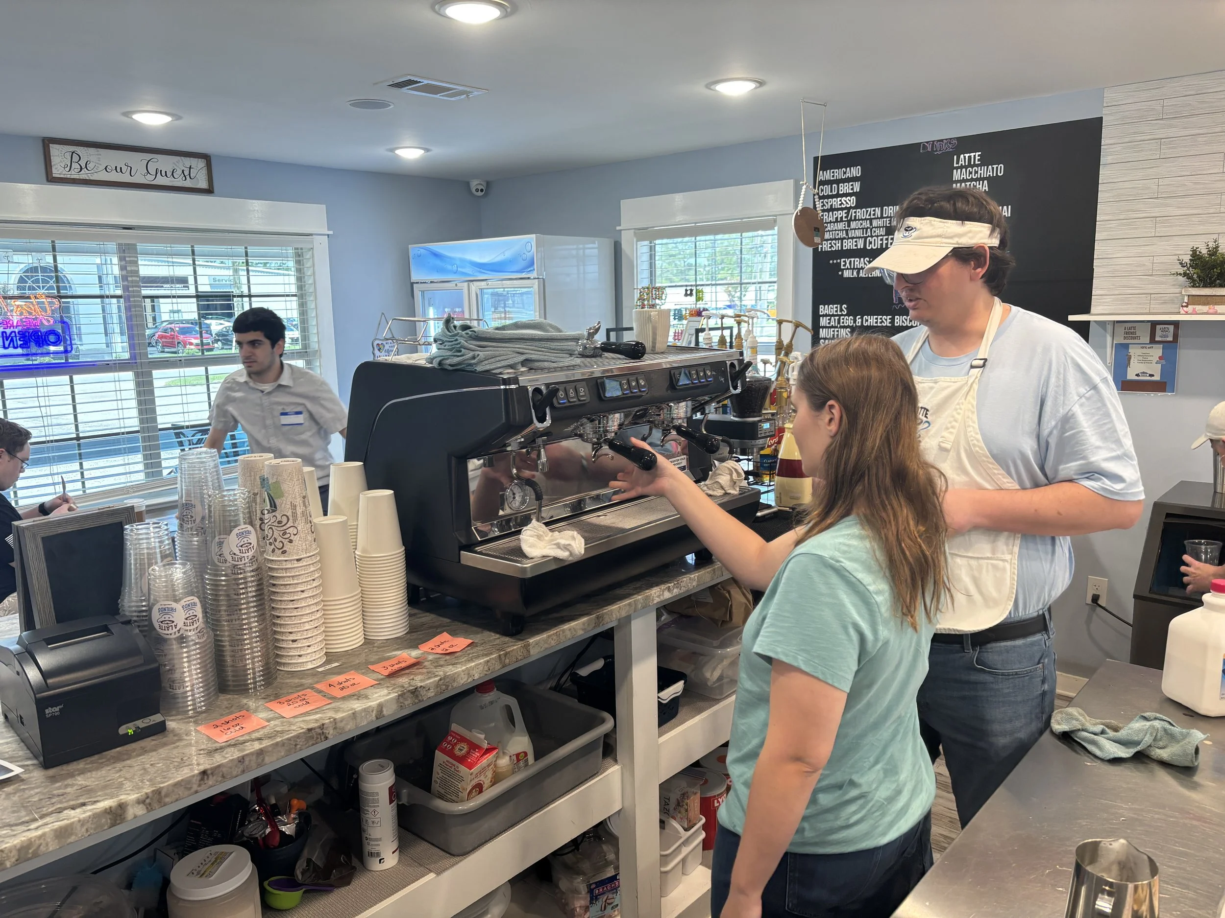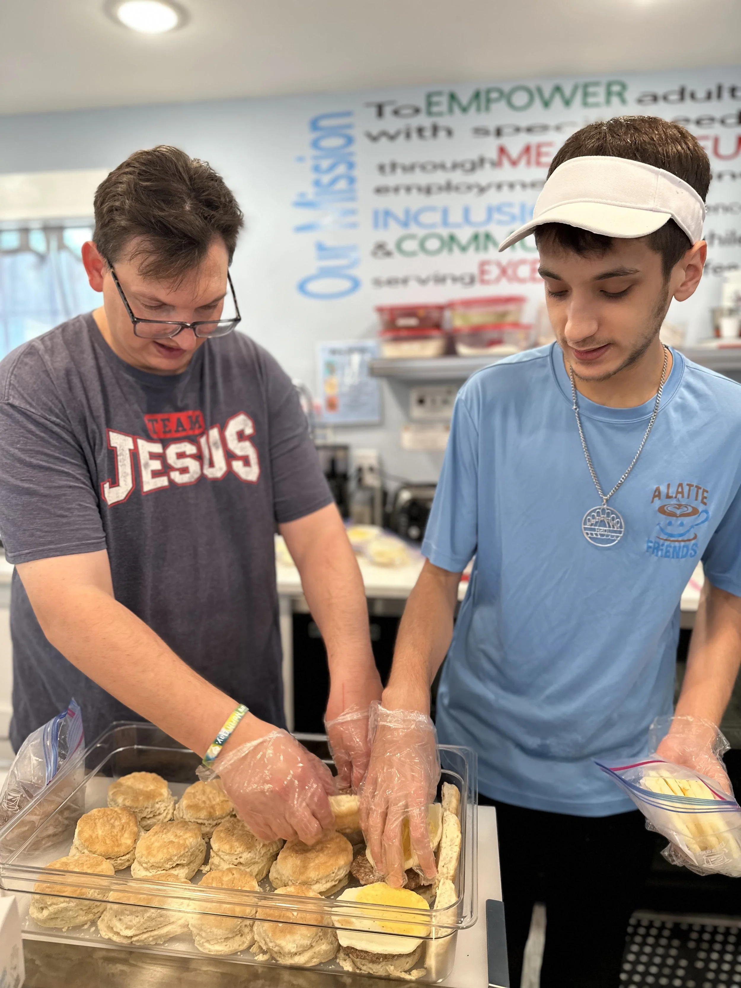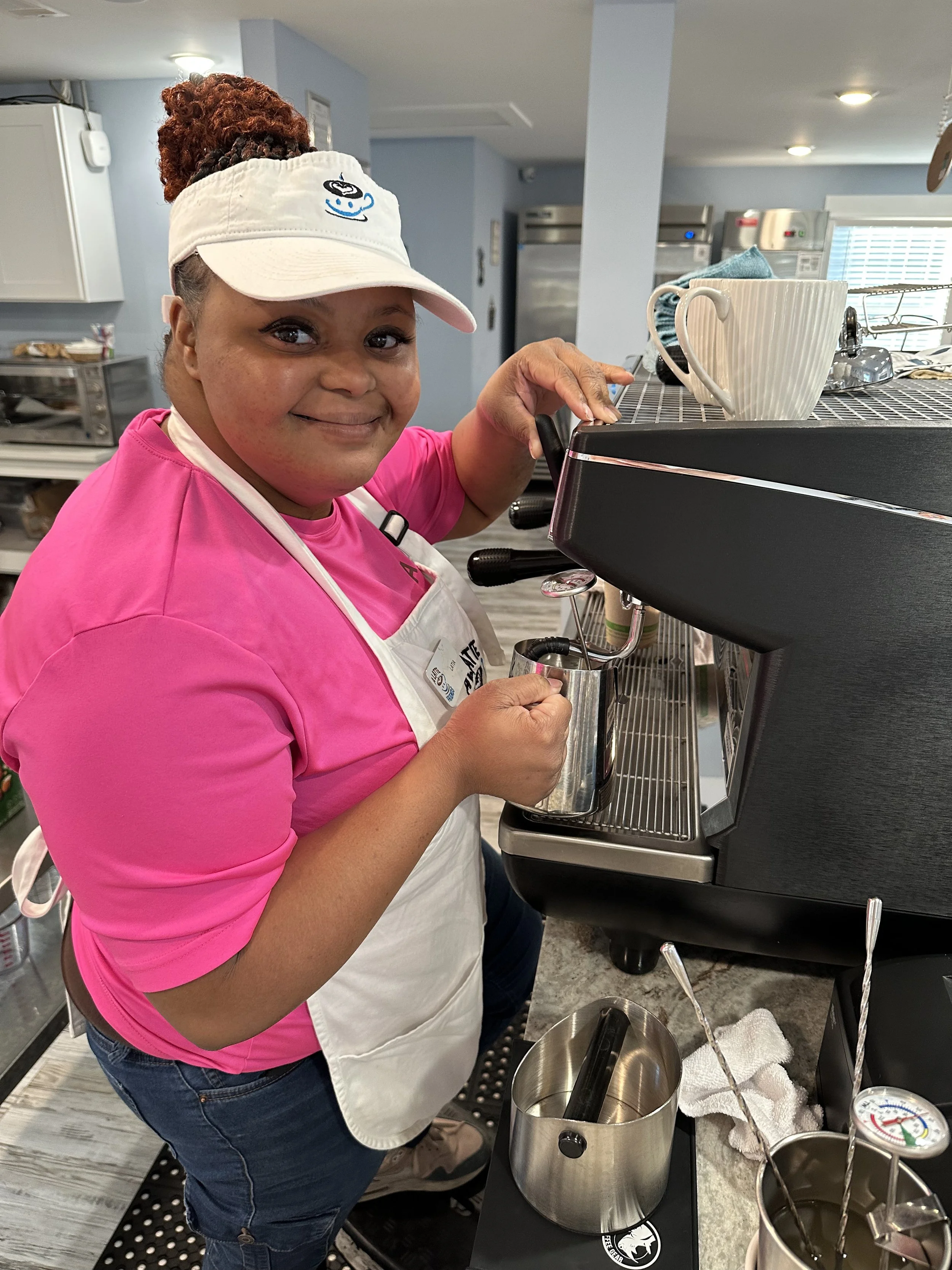 The coffee shop serves as the heart of the A Latte Opportunities Training and Employment Program. Through structured, hands-on learning, adults with intellectual and developmental disabilities gain practical skills, workplace confidence, and a sense of purpose in a supportive environment.